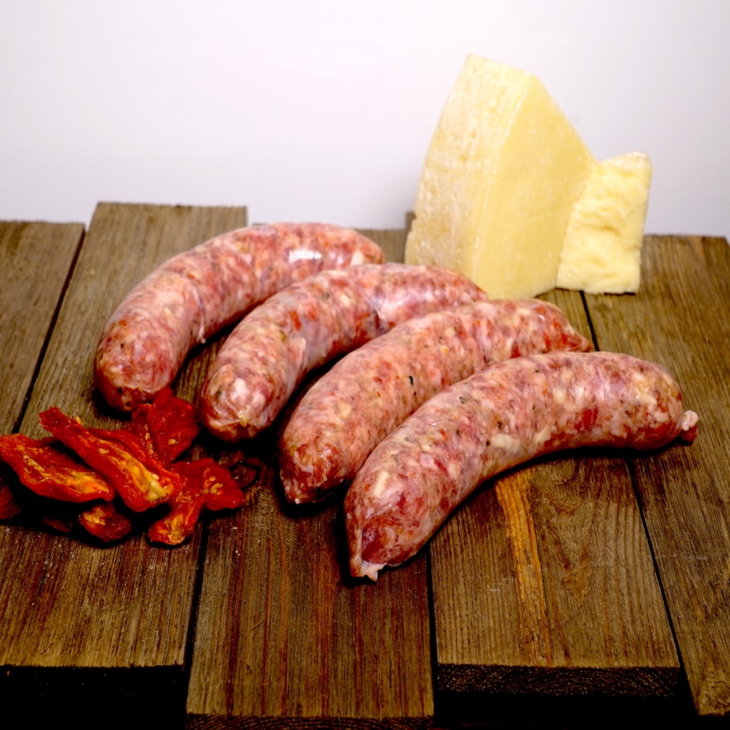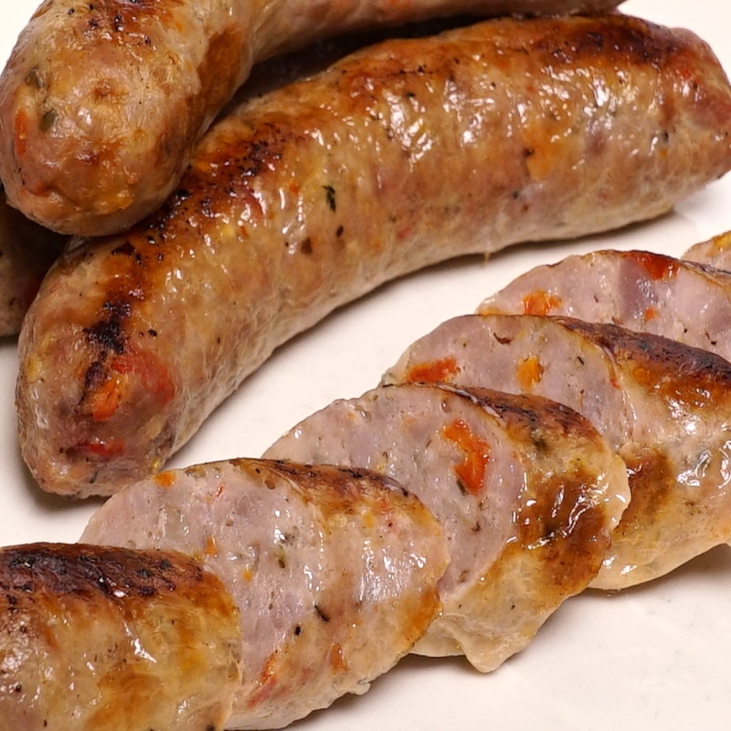 Mozzarella, fresh basil, and sun-dried tomatoes really set this Italian-inspired sausage above the rest. A strong, balanced flavor profile with a punch of sun-dried tomato in the beginning and a light fresh basil finish. Not too spicy and loaded with flavor – it’s going to be hard to decide whether you want to eat this sausage alone on a bun, or added to spice up one of your favorite dishes.